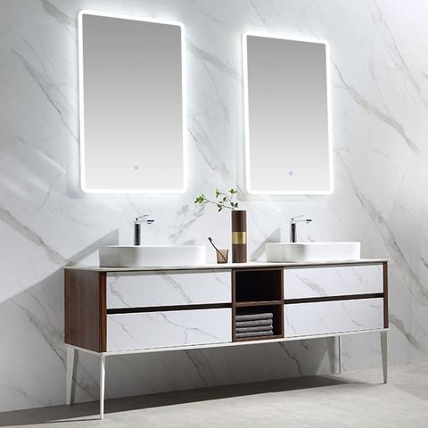 Realgres Pvc Double Basin Wall Hung Modern Commercial Sink Marble Waterproof Bathroom Vanity Units With Marble Top